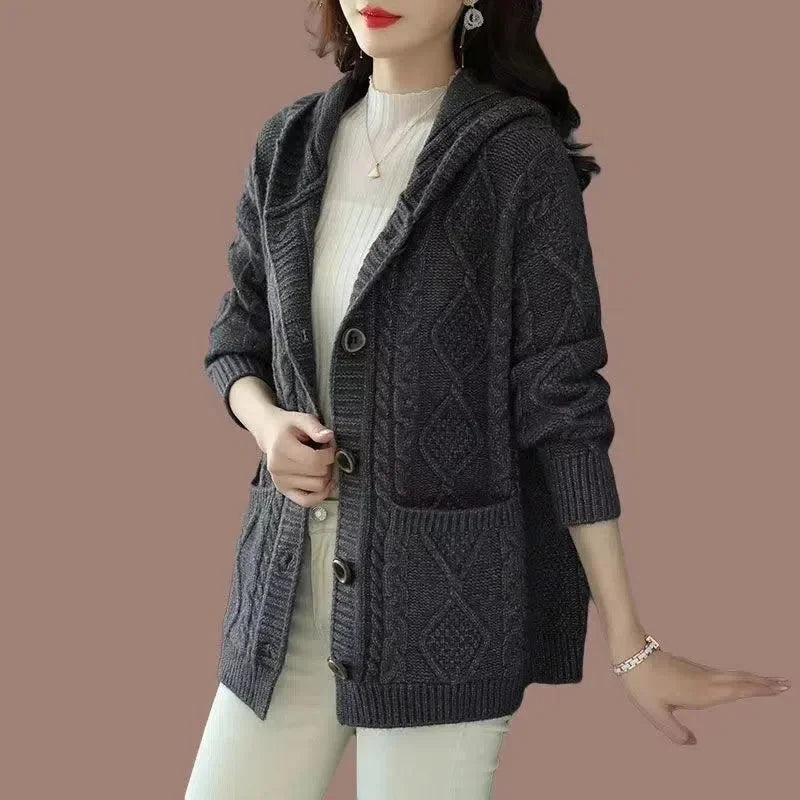 Designed with detailed diamond stitching and a relaxed cozy fit, our hooded cardigan is as stylish as it is practical. Complete with functional pockets and a vintage button-up front, it’s ideal for casual outings or staying comfortable at home.