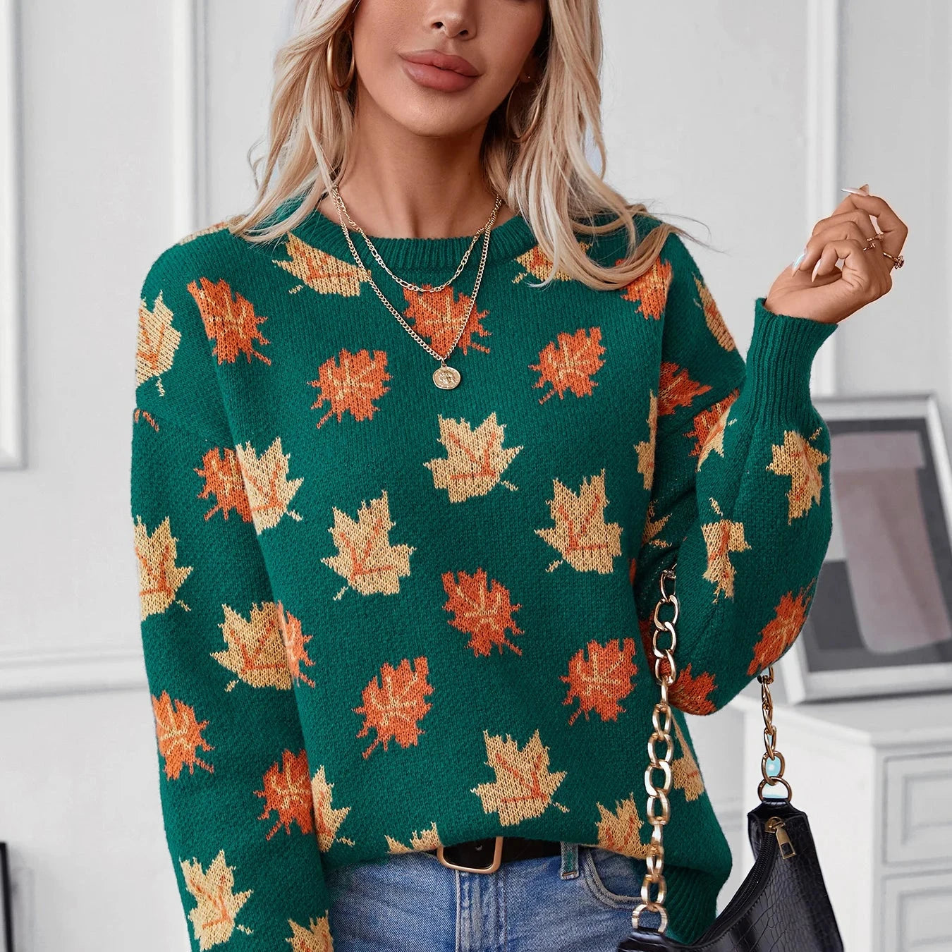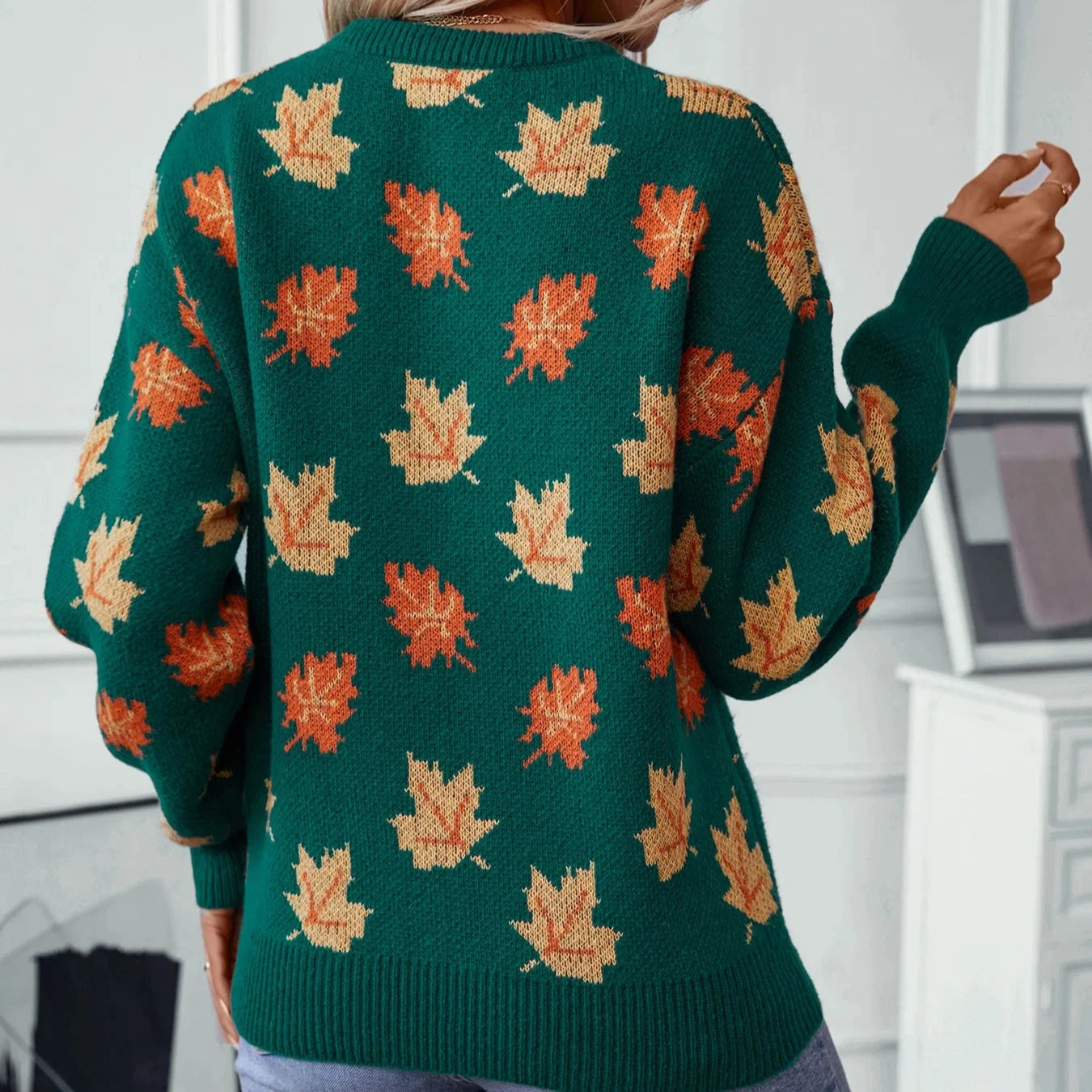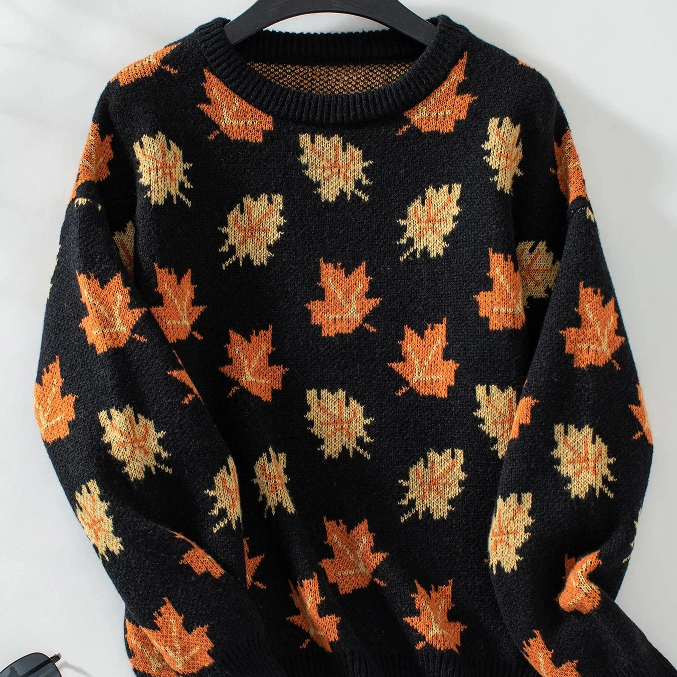 Fall in love with the vibrant colors of our leaf-patterned pullover! The rich greens and fiery oranges bring a burst of fall to your wardrobe, making it as eye-catching as it is cozy. This sweater keeps you warm without any of the bulk, making it perfect for layering up and staying comfy. Pair it with jeans for a laid-back, casual vibe, or throw on a skirt for a dressed-up look that feels effortless.