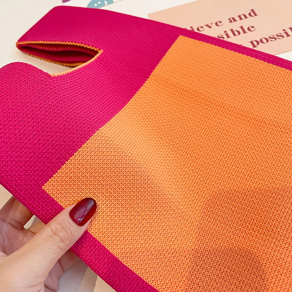 Handmade Knit Handbag Women Mini Knot Wrist-bag Female Casual Color Wide Stripe Plaid Tote Bag Student Reusable Shopping Bag