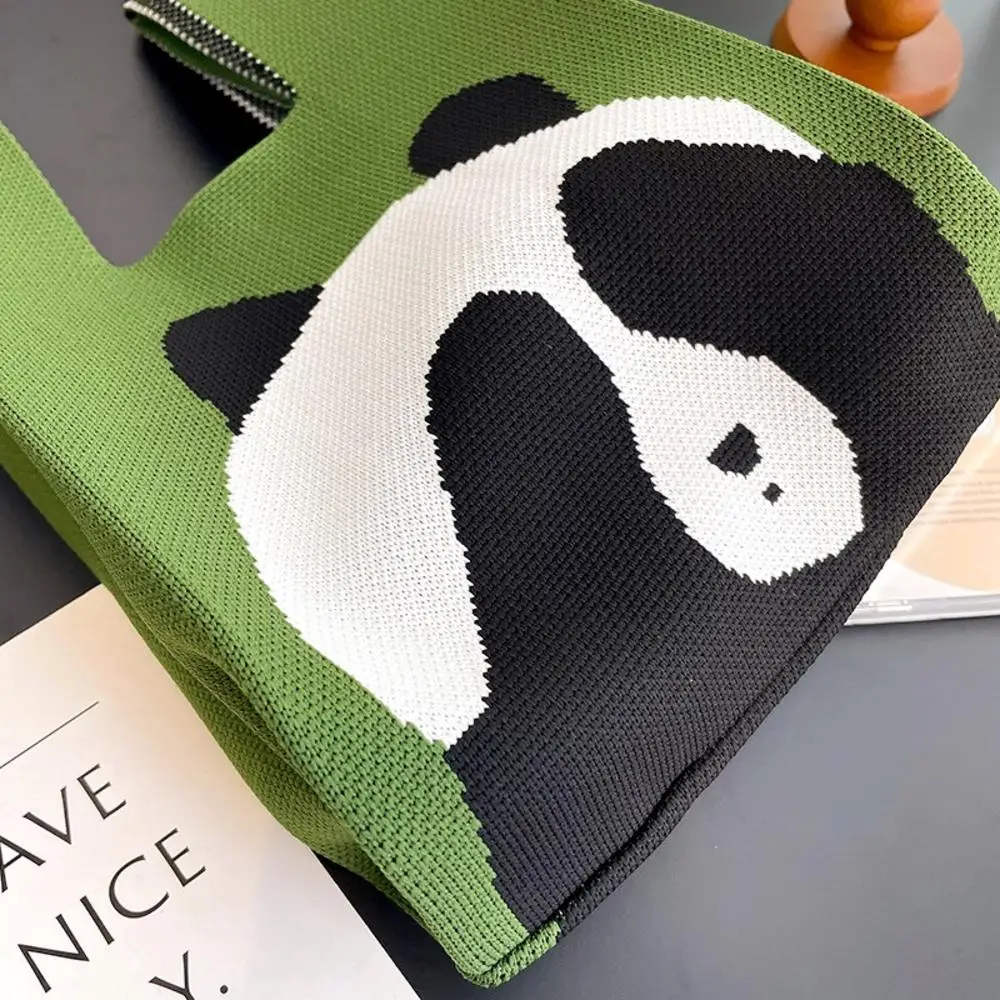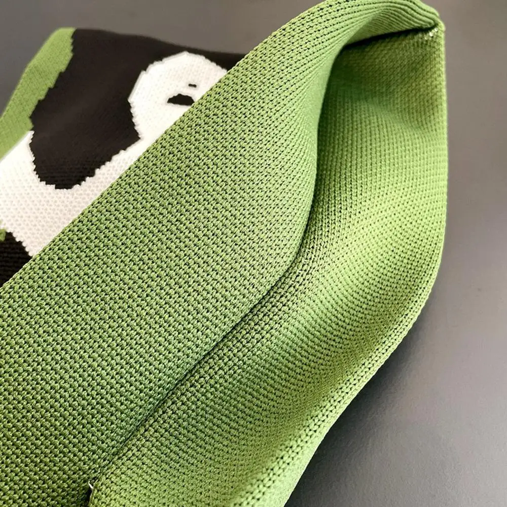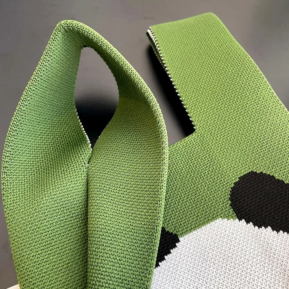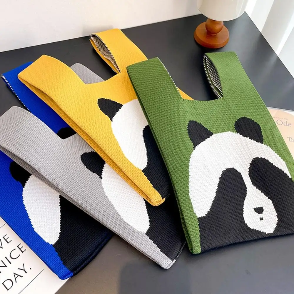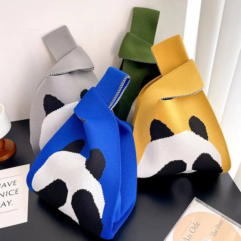 Handmade Knit Handbag Women Mini Knot Wrist Bag Japanese Casual Color Wide Stripe Plaid Tote Bag Student Reusable Shopping Bags
