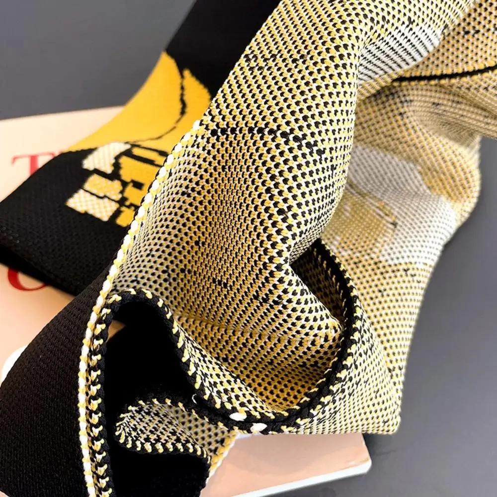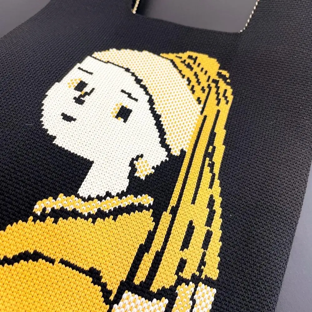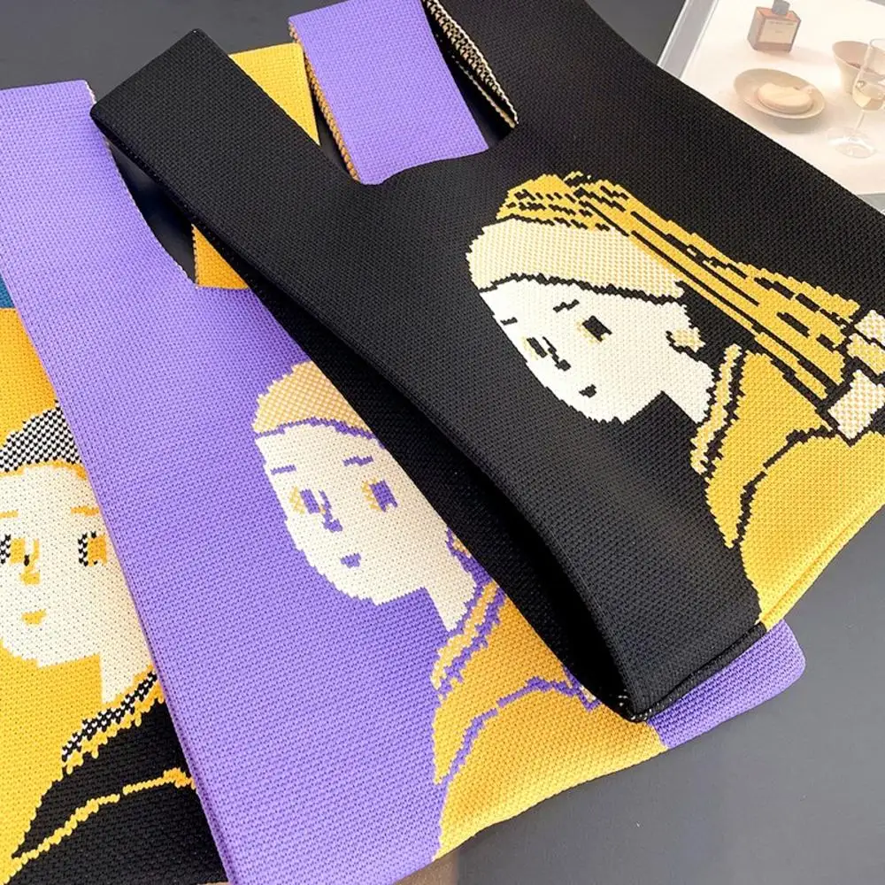 • Handmade Knit Handbag Women Mini Knot Wrist-bag Female Casual Color Wide Stripe Plaid Tote Bag Student Reusable Shopping Bag