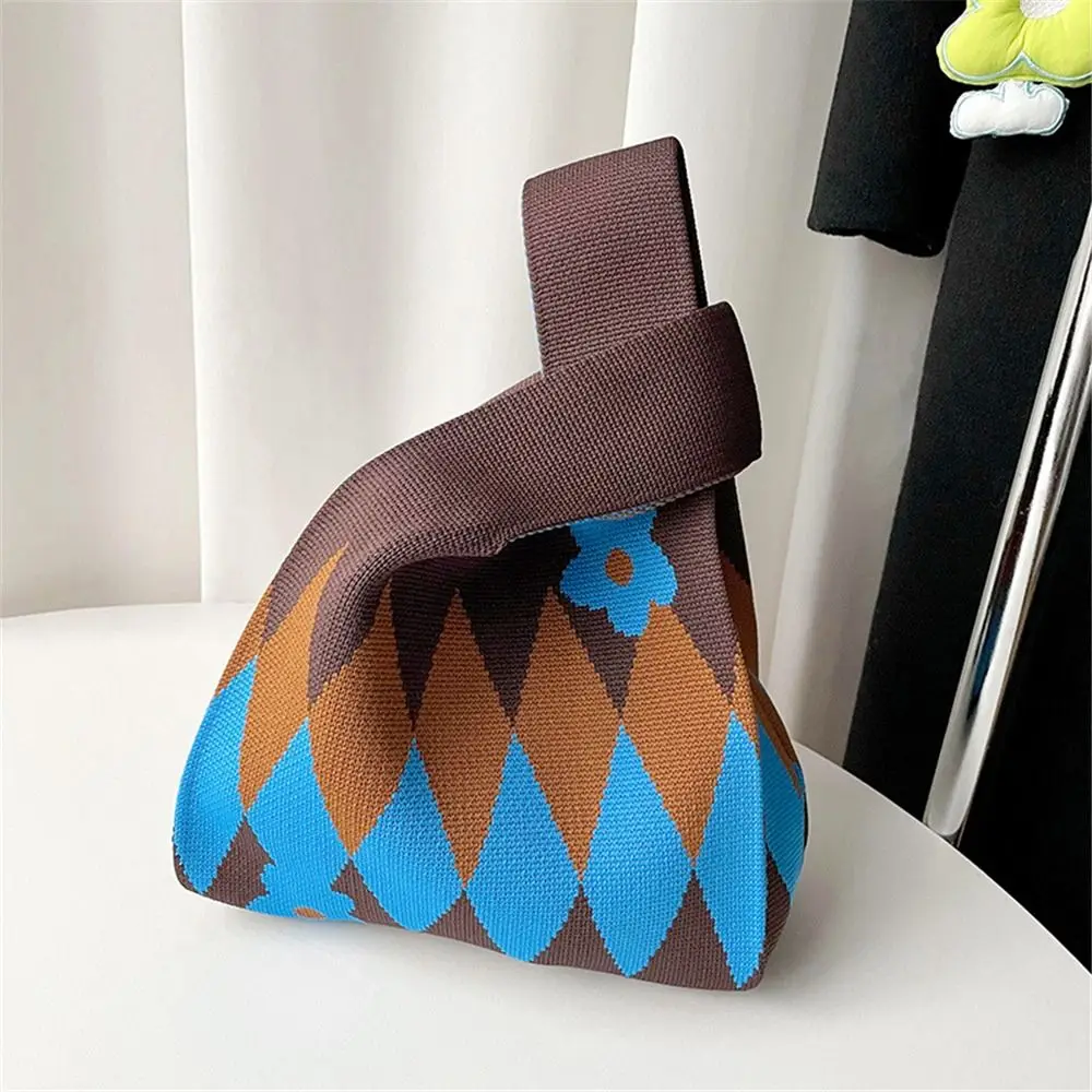 • Flower Handmade Knit Handbags Women Knot Wrist Bag Casual Small Tote Bag Girls Reusable Shopping Bags