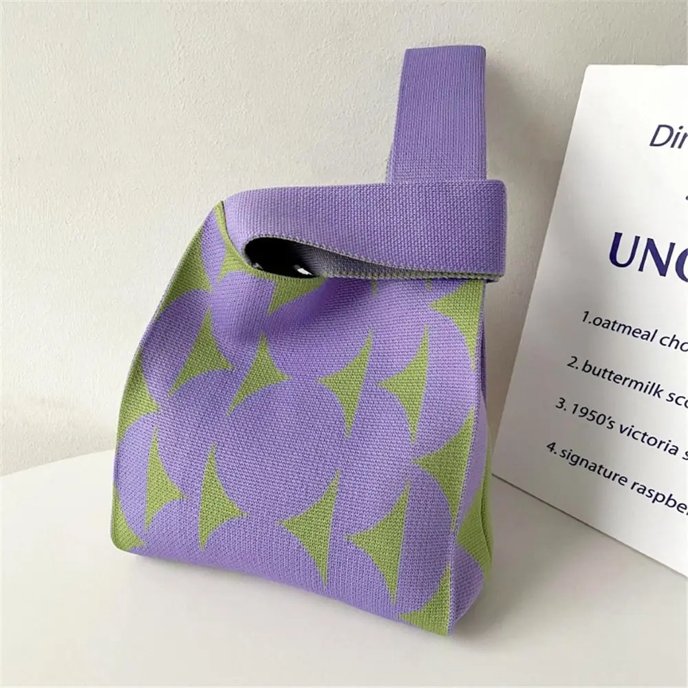 Handmade Knit Handbag Women Knot Wrist Bag Casual Tote Bag Girls Reusable Shopping Bags Knit Handbag
