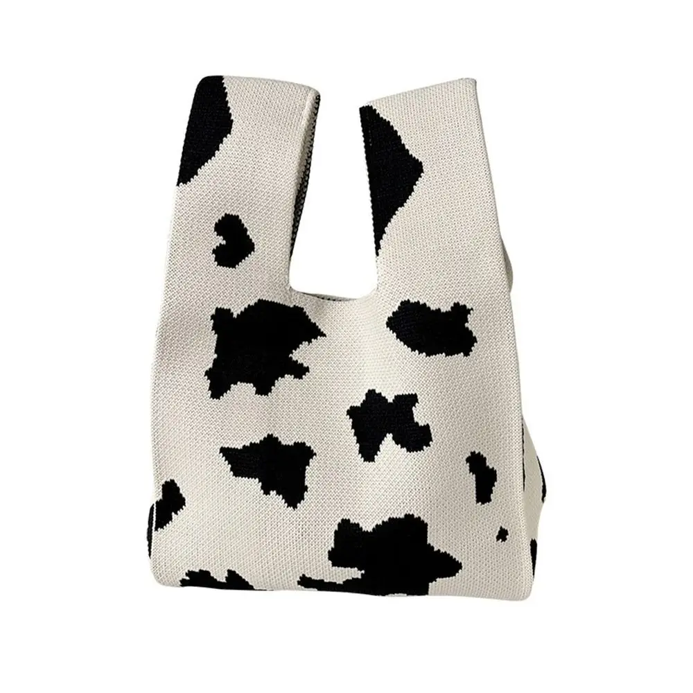 • Handmade Knit Handbag Women Mini Knot Wrist Bag Casual Color Plaid Tote Bag Student Reusable Shopping Bags