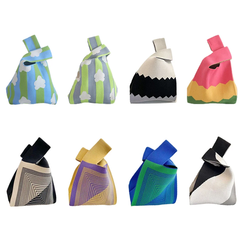 Women Mini Knot Wrist Bag Fashion Handmade Knit Handbags Korean Casual Tote Bag Reusable Shopping Bags