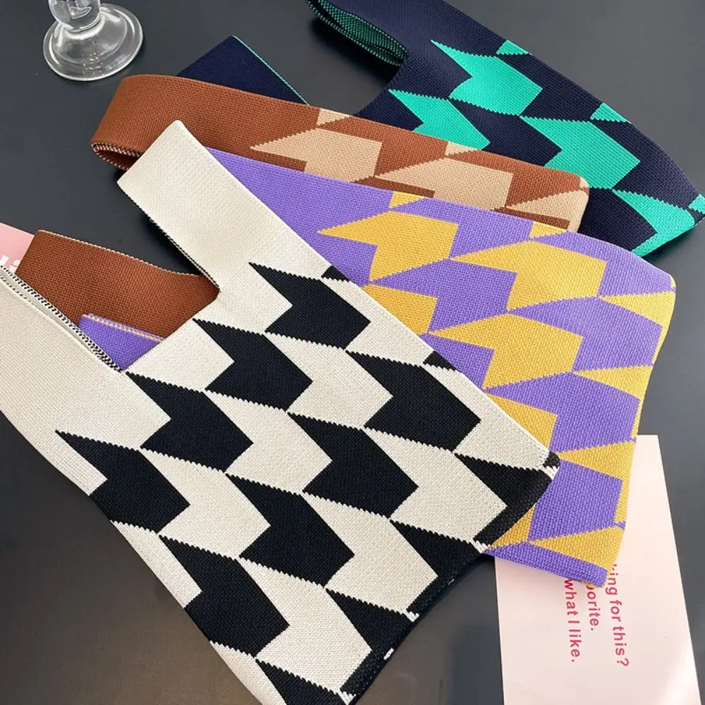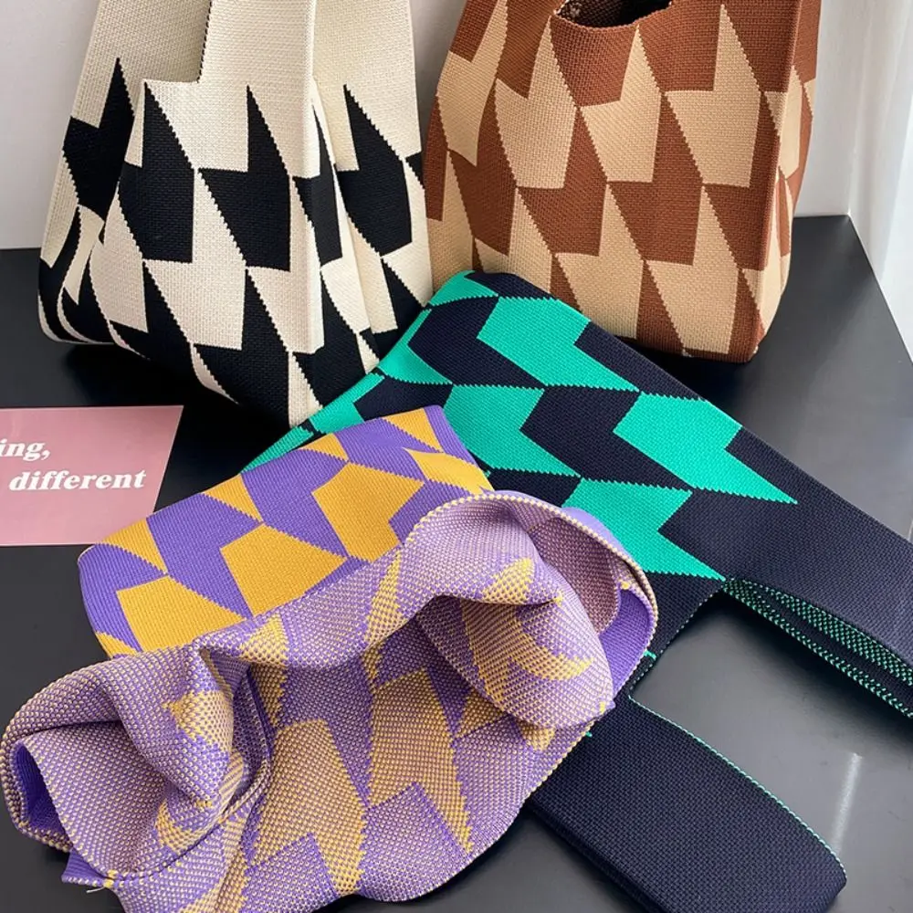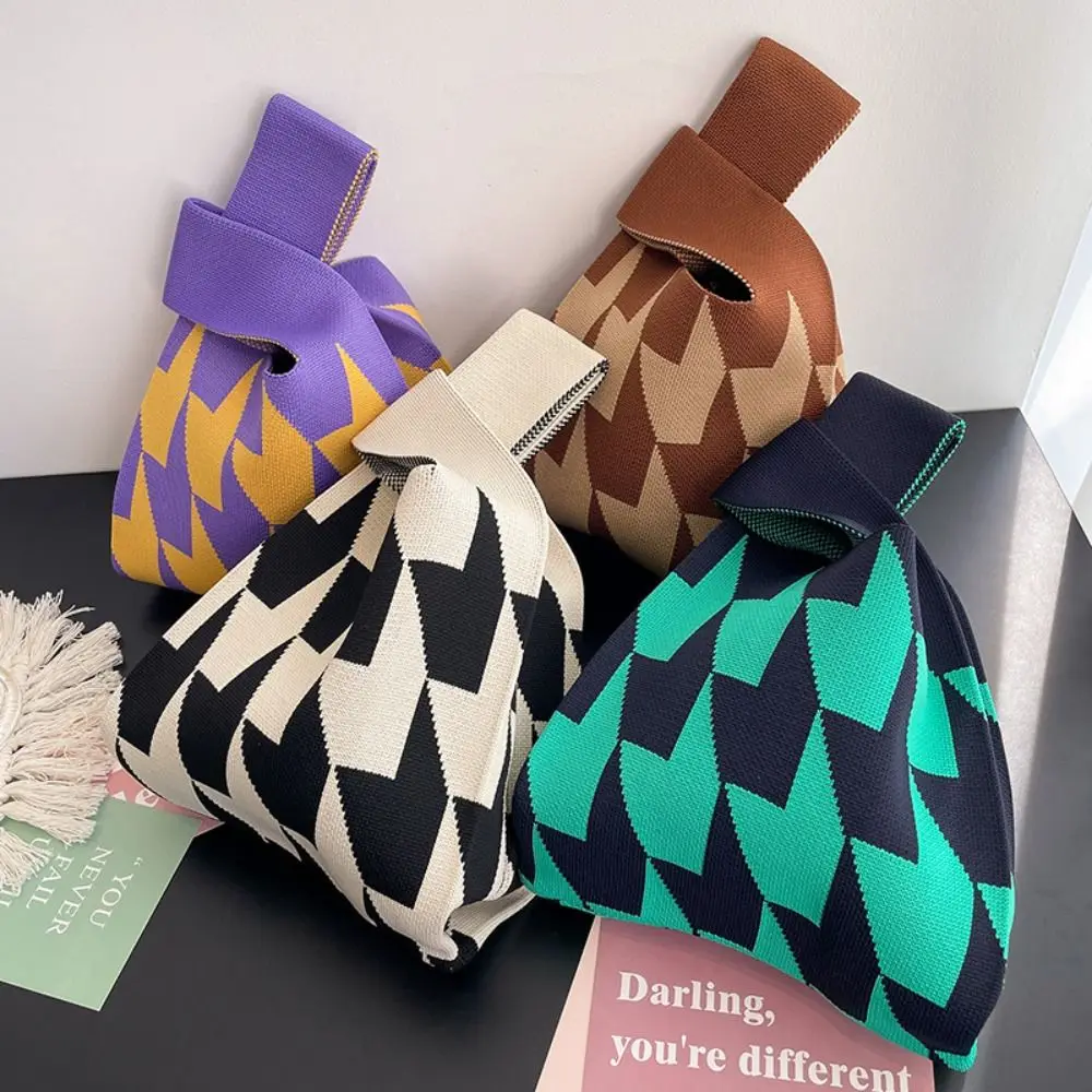 • Women's Japanese Knot Casual Striped knit Top-Handbag Fashion Knitted Shoulder Bag Student Capacity Reusable Shopping Wrist Bag