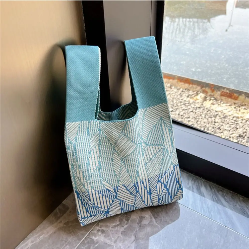 • Handmade Knit Handbag Niche Design Knot Wrist Bag Reusable Mini Tote Bag Women Girls Shoulder Bag New Fashion Shopping Bags