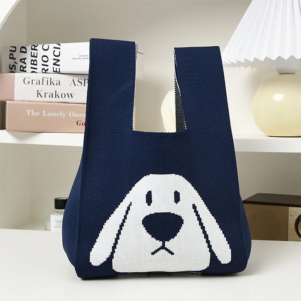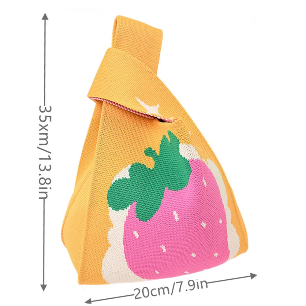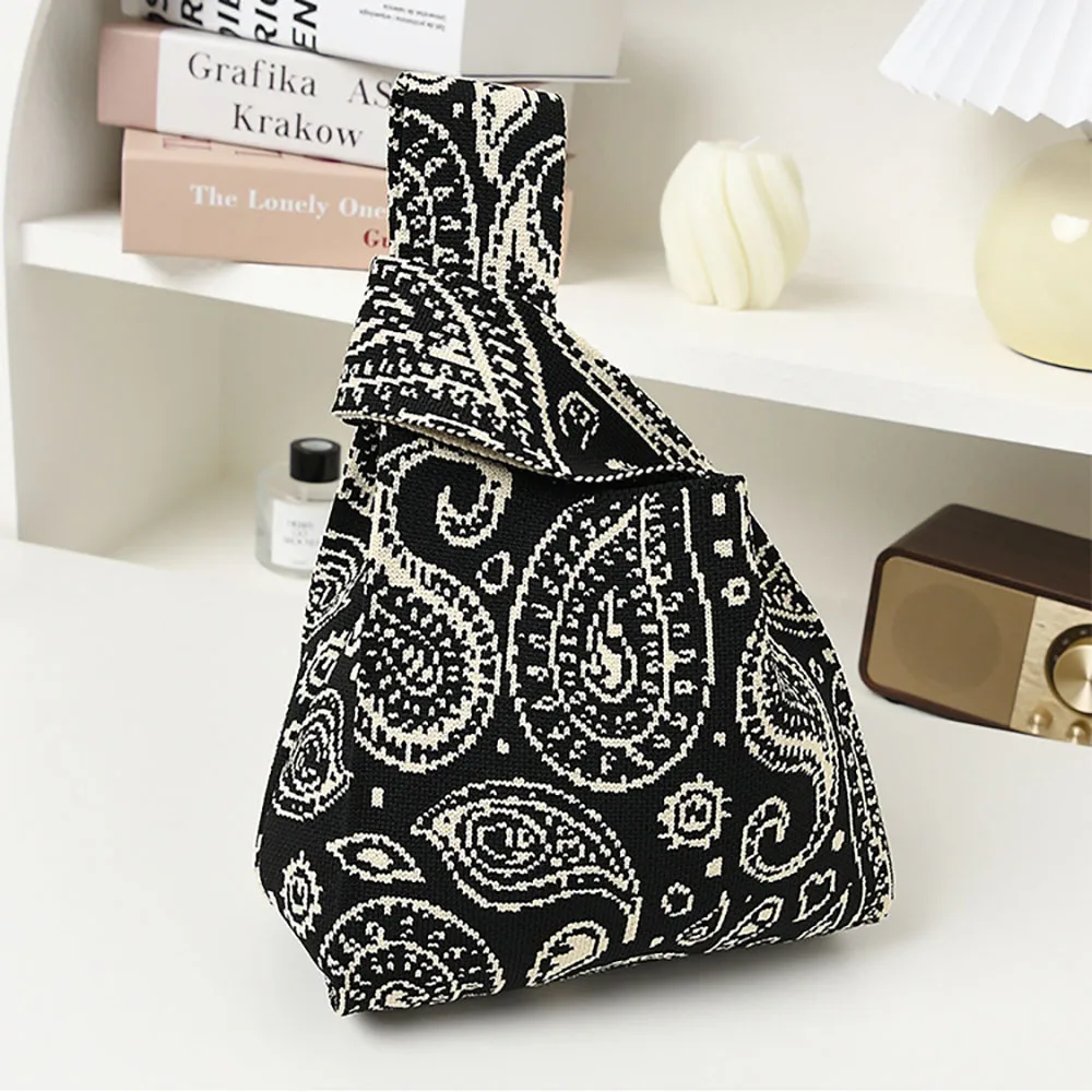 • Handmade Knit Handbag Women Mini Knot Wrist-bag Female Casual Color Wide Stripe Plaid Tote Bag Student Reusable Shopping Bag
