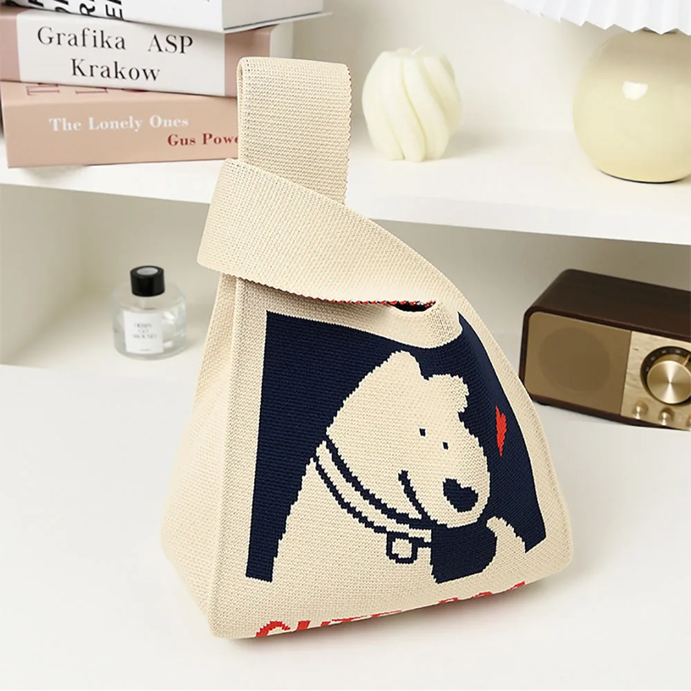 Handmade Knit Handbag Women Mini Knot Wrist-bag Female Casual Color Wide Stripe Plaid Tote Bag Student Reusable Shopping Bag