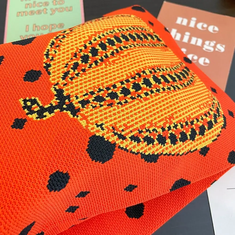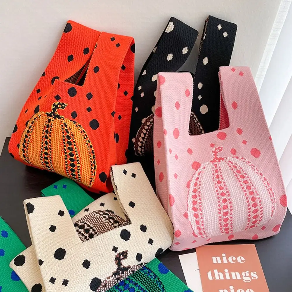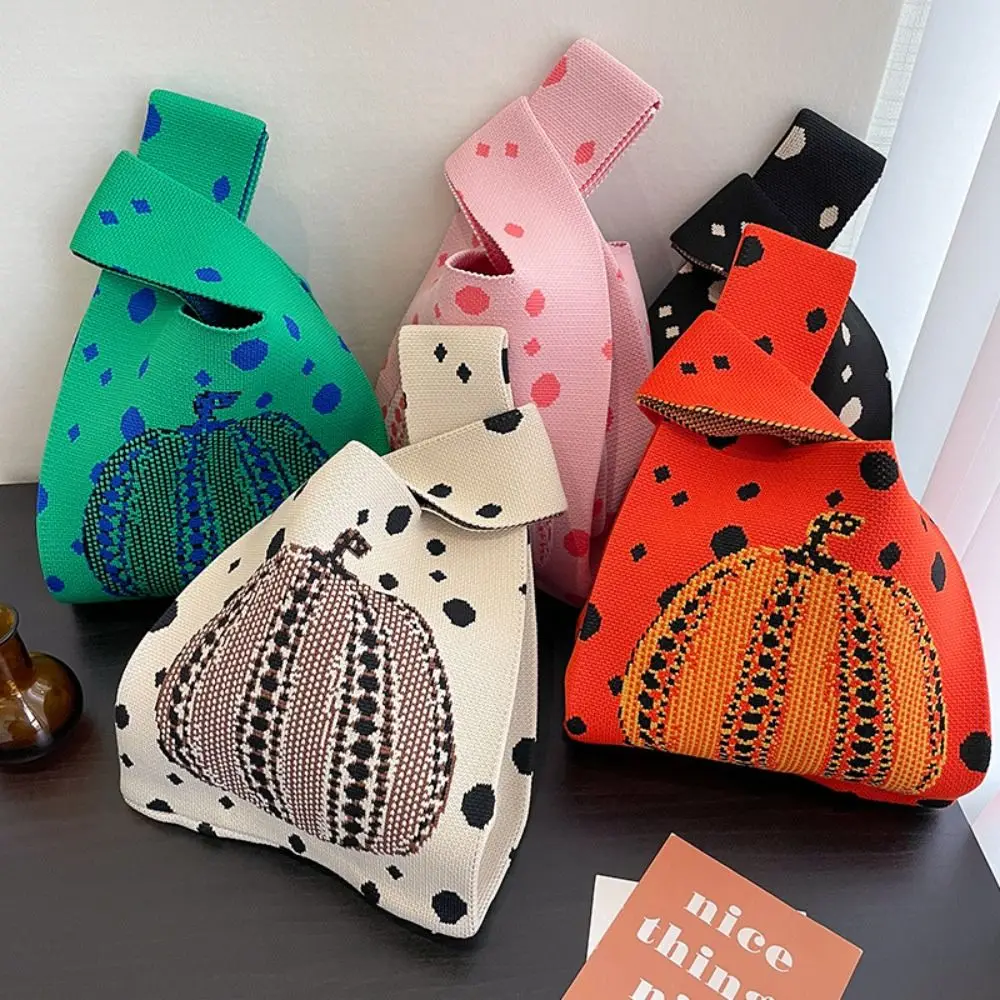 • Pumpkin Knit Handbag Reusable Knit High-capacity Tote Bag Knot Wrist Bag Student